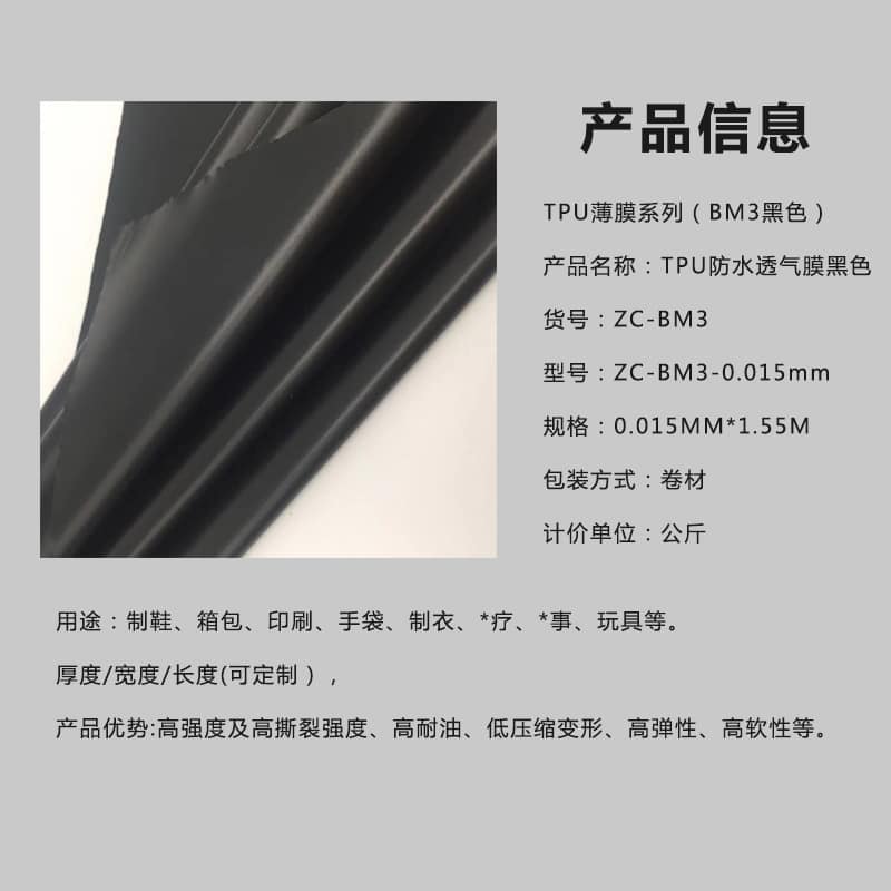 工廠直銷 TPU膜 防水透氣膜 tpu黑色 型號:0.015mm*1.25m